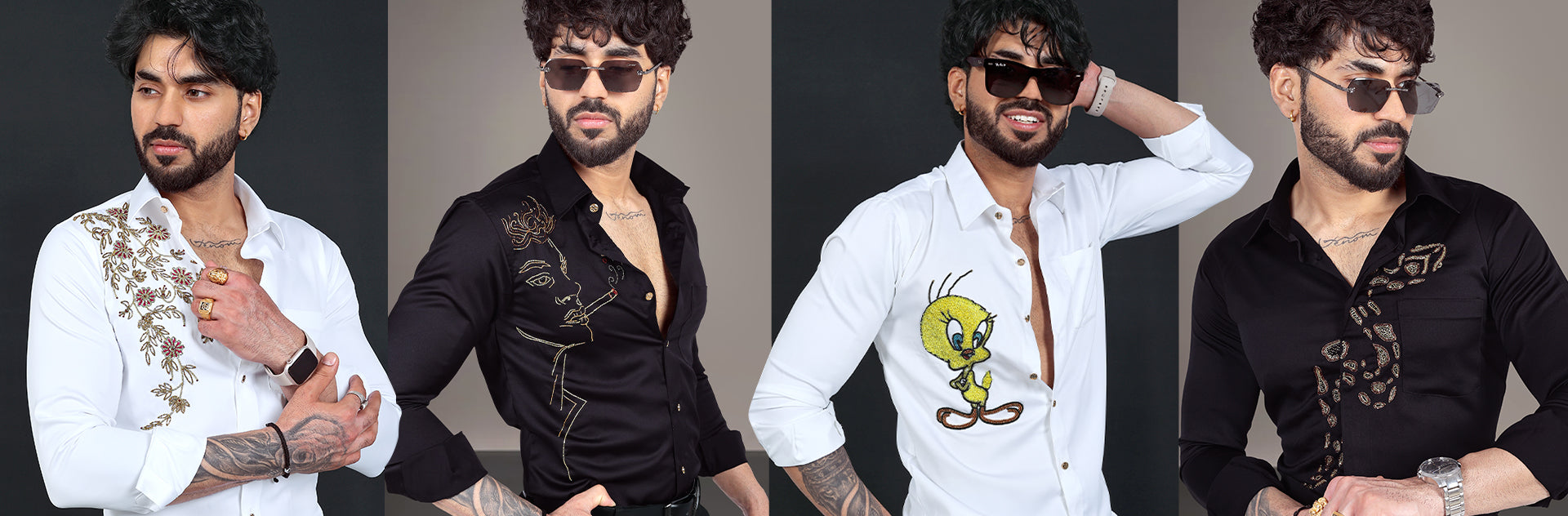 Wolf Sleeve Luxury Hand Embroidered Shirt